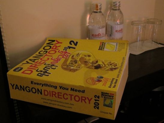 Still, I arrived back in Yangon knowing that one of the great pleasures of being able to come back is that you see things differently the second time around. In Yangon I didn’t bother with the pagodas, the crumbling colonial buildings or the river. For me, it was all about the experience — my favorite samosas at a downtown tea shop; getting to see a film in a bone-chilling, pitch black theater for $1 as the Burmese loudly cracked open sunflower seeds; shopping for photo greeting cards for a friend. Change is everywhere, but for the time being you are still in a time warp — loved this thick yellow pages book, first I’ve seen in years.