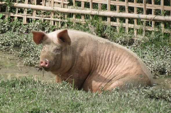 Continuing my unexpected interaction with animals, I found quite a few of my Chinese calendar brethren in Mrauk U. Here is one guy who was enjoying a nice slosh through the marsh.